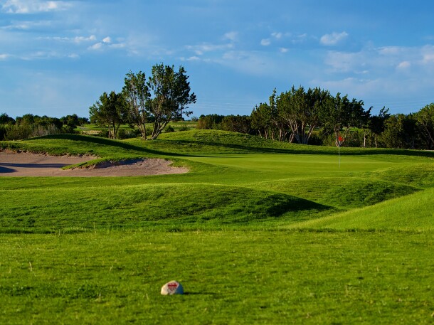 - Large greenside sand bunker that also sits adjacent to the driving range for longer iron shots.